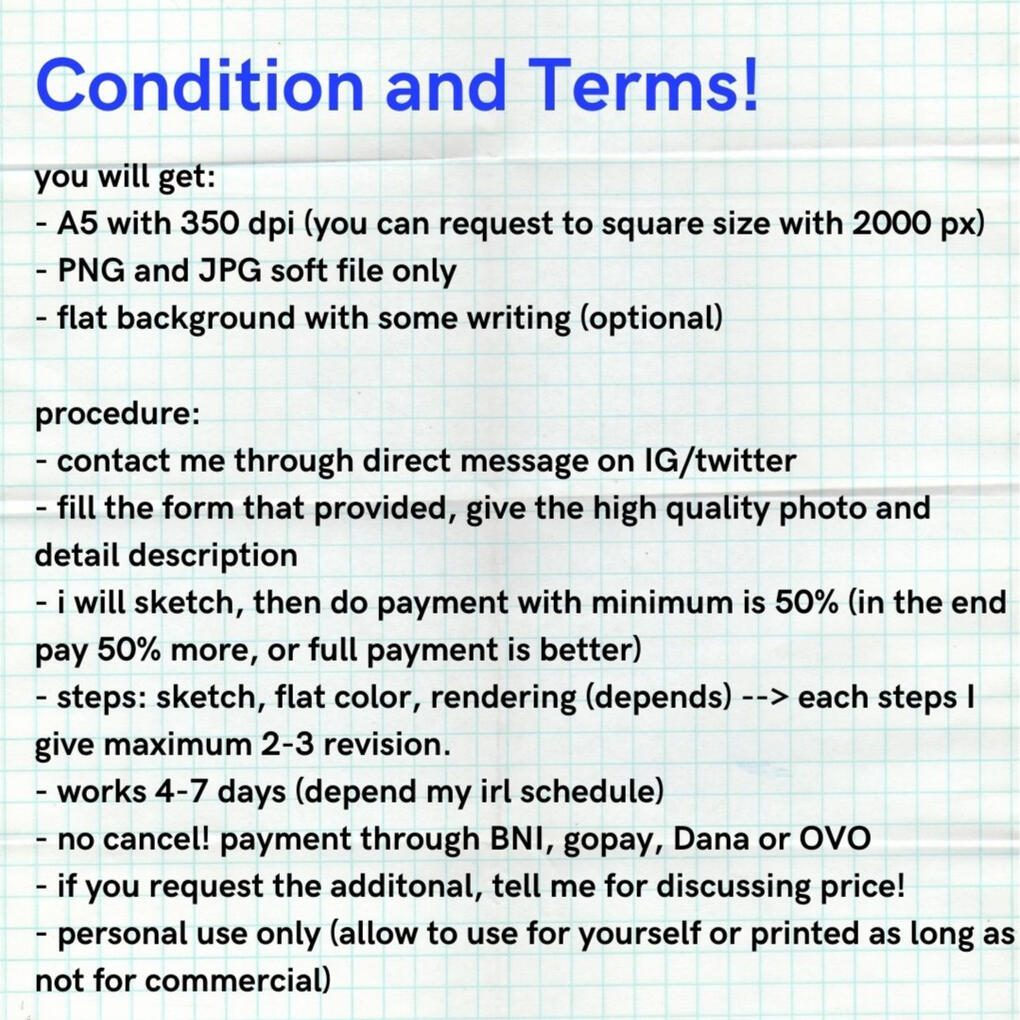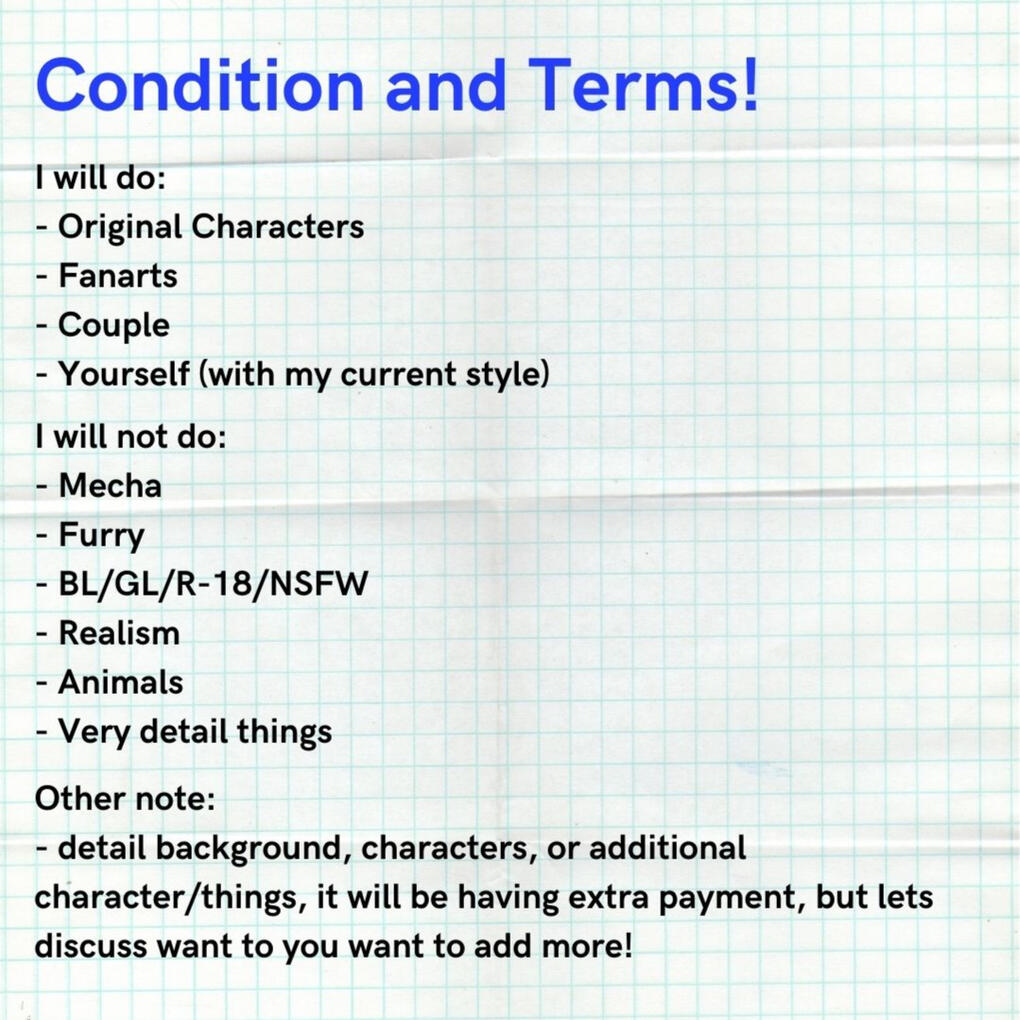welcome to my commission page! you can click the button to see TnC or the commissioned drawings :)