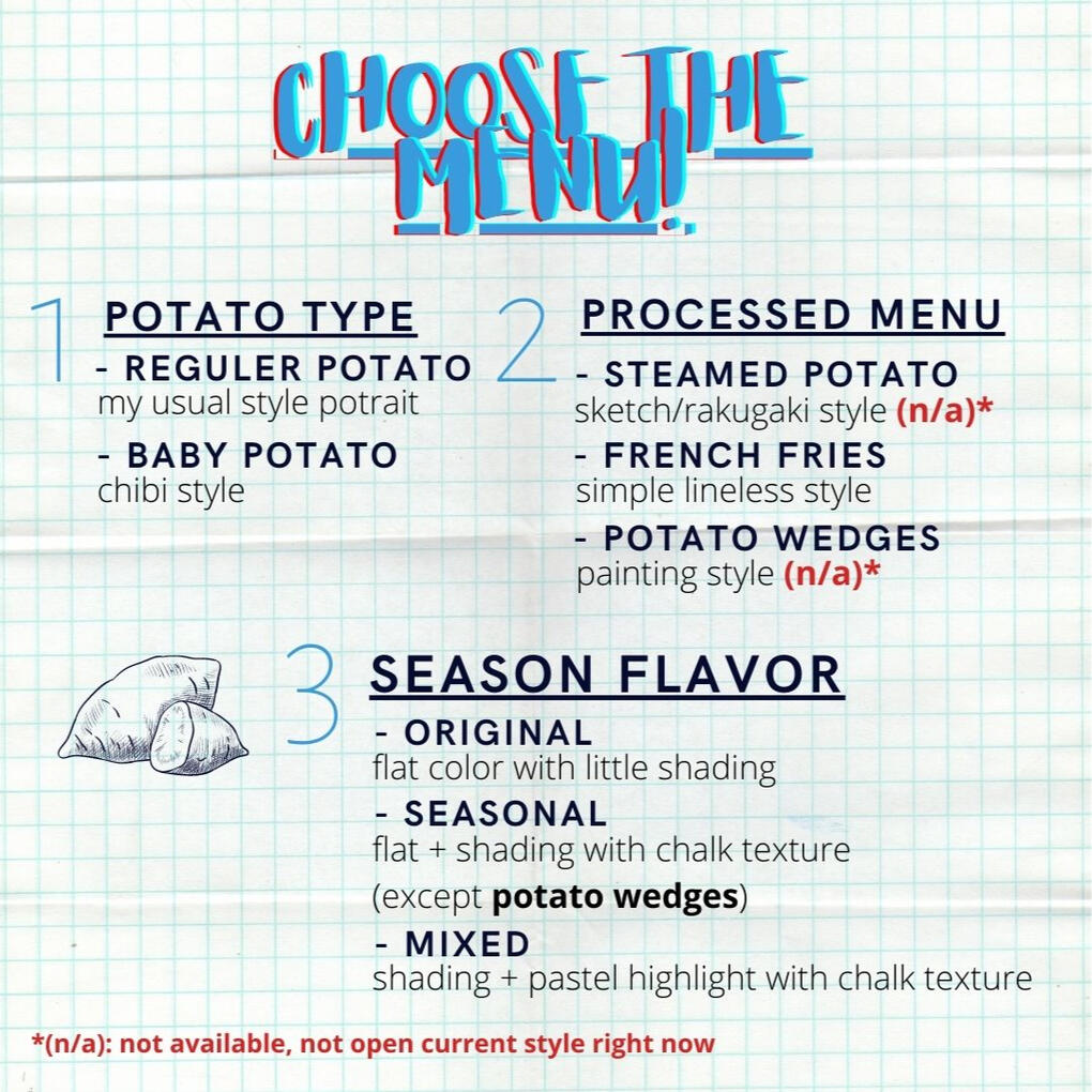 reguler potato | steamed | original, seasonal, mixed | not available yet |